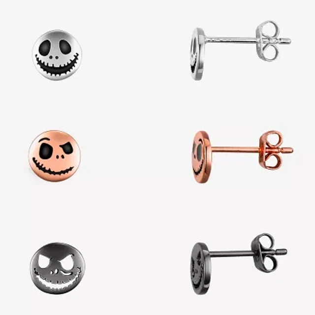 Disney Classics Jack Skellington Womens 14k Rose Gold Over Brass Nightmare Before Christmas 3 Pair Earring Set