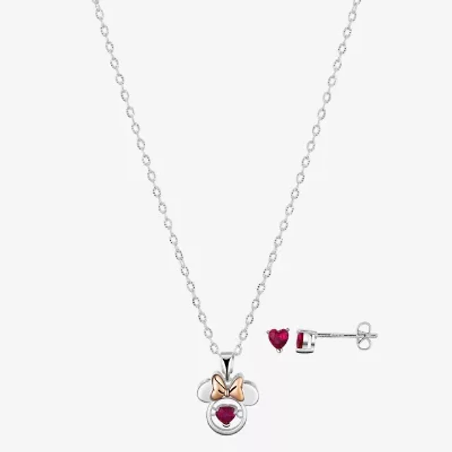 Disney Classics Womens Red Cubic Zirconia Pure Silver Over Brass Bow Heart Minnie Mouse 2-pc. Jewelry Set