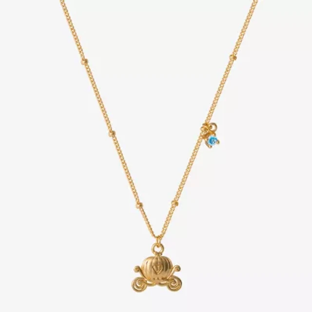 Disney Collection Carriage Womens Blue Cubic Zirconia 14K Gold Over Silver 15 Inch Pendant Necklace