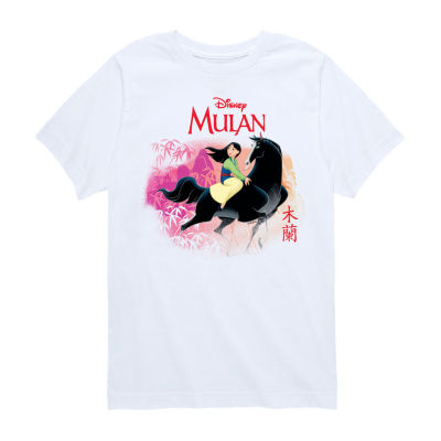 Disney Collection Little & Big Kid Girls Crew Neck Short Sleeve Regular Fit Princess Mulan Graphic T-Shirt