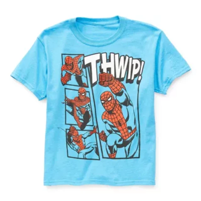 Disney Collection Little & Big Kid Boys Crew Neck Short Sleeve Regular Fit Avengers Marvel Spiderman Graphic T-Shirt