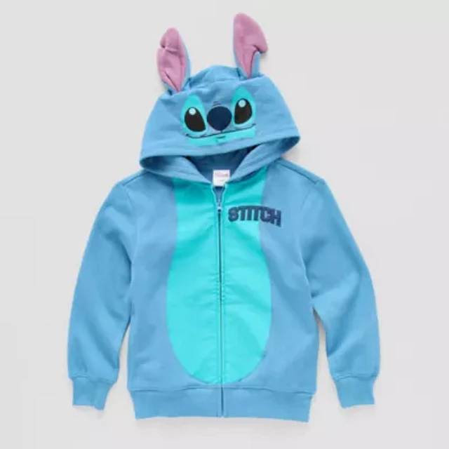 Disney Collection Little & Big Kid Boys Long Sleeve Embroidered Lilo & Stitch Fleece Zipper Hoodie