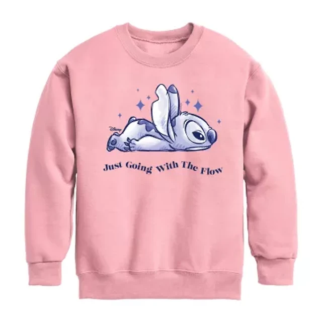 Disney Collection Little & Big Kid Girls Crew Neck Long Sleeve Lilo Stitch Sweatshirt