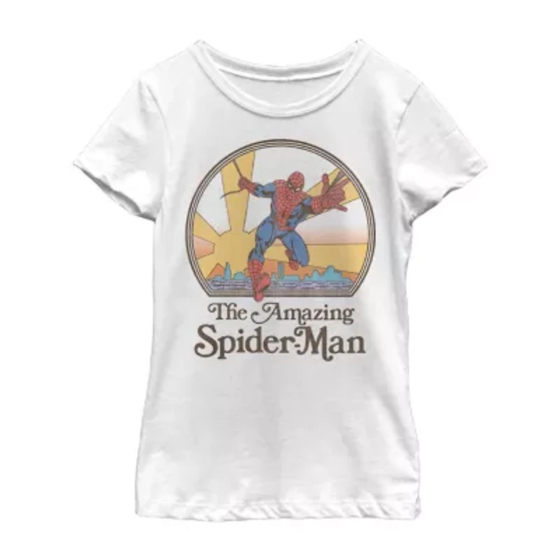 Disney Collection Little & Big Kid Girls Crew Neck Short Sleeve Regular Fit Marvel Spiderman Graphic T-Shirt