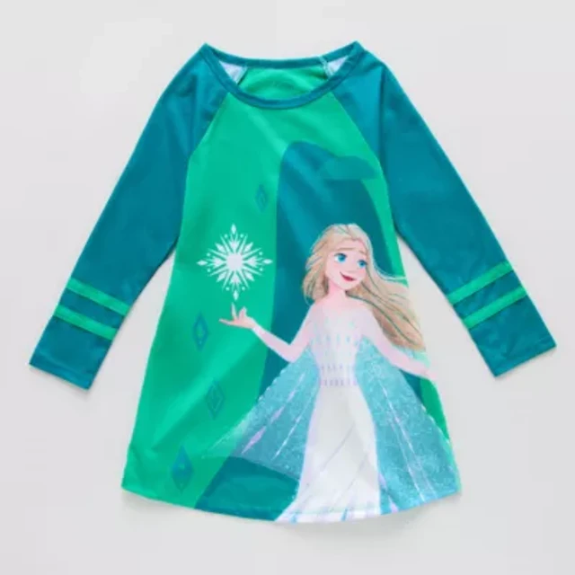 Disney Collection Little & Big Kid Girls Elsa Frozen Crew Neck Long Sleeve Nightshirt