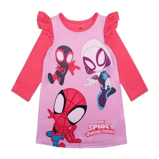 Disney Collection Toddler Girls Spiderman Crew Neck Long Sleeve Nightgown