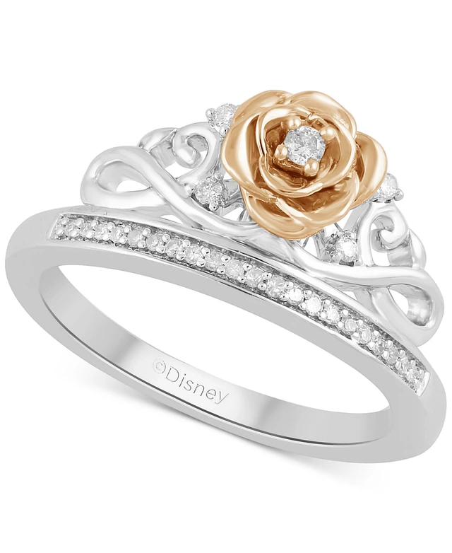 Disney Enchanted Vault Diamond Belle Rose Tiara Ring (1/10 ct. t.w.) in Sterling Silver & 14k Rose Gold-Plated Sterling Silver