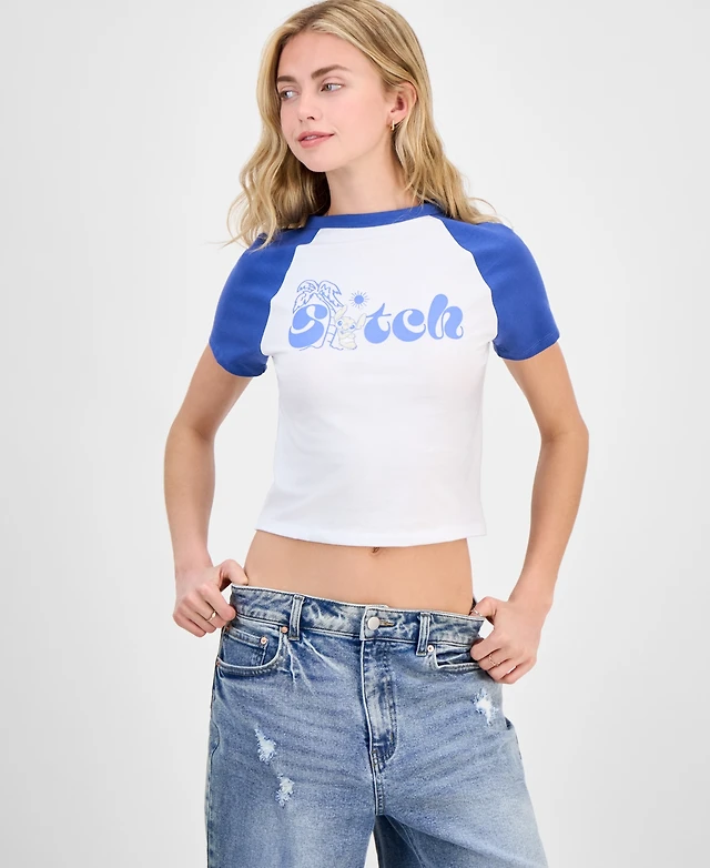 Disney Juniors' Stitch Palm Raglan Crewneck Tee