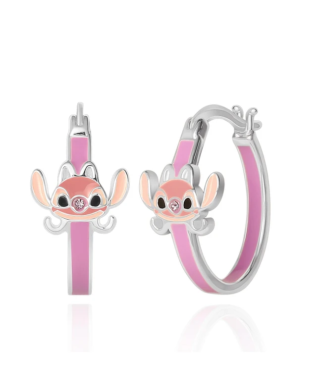 Disney Lilo and Stitch Silver Plated Angel Enamel Hoop Earrings