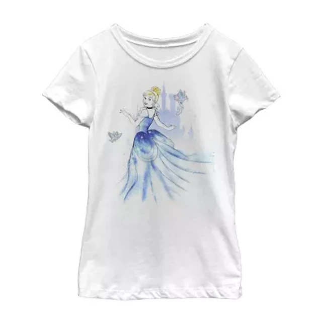 Disney Little & Big Kid Girls Crew Neck Short Sleeve Regular Fit Cinderella Graphic T-Shirt