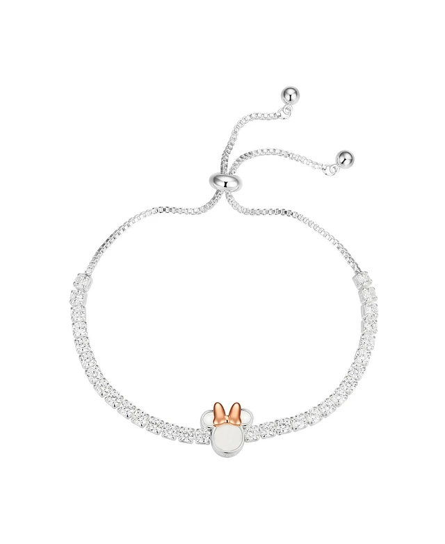 Disney Mother of Pearl Minnie Mouse Cubic Zirconia Adjustable Bolo Bracelet