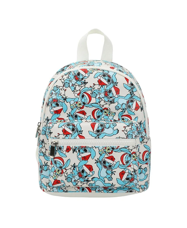 Disney Stitch Santa Stitch All-Over Print White Faux Leather 10.6" Mini Backpack