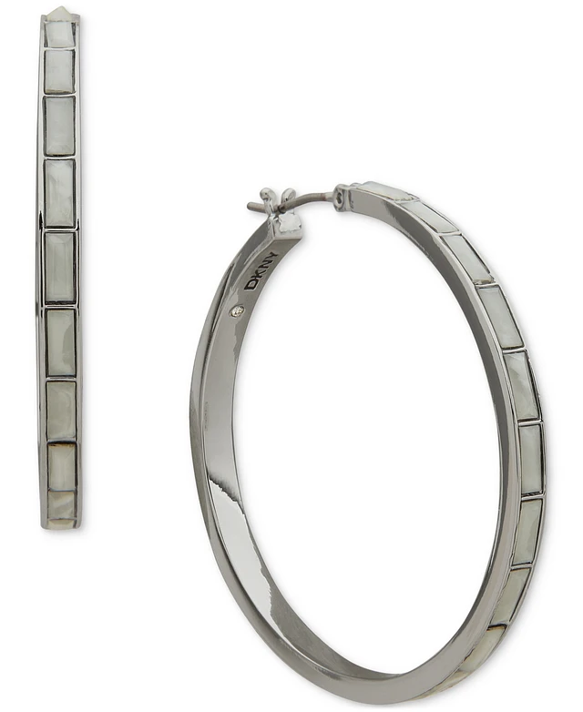 Dkny Medium Silver-Tone Pave Hoop Earrings 2"