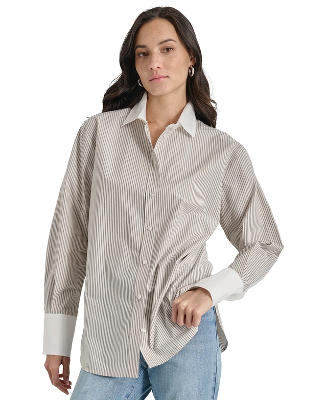 Dkny Jeans Women's Cotton Contrast-Trim Button-Front Shirt