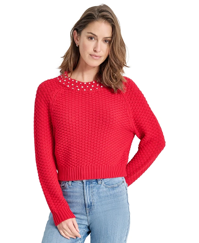 Dkny Jeans Women's Crystal-Embellished Raglan-Sleeve Sweater