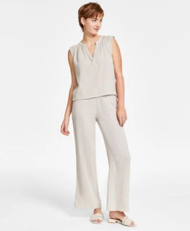 Dkny Womens Linen Tank Top Dkny Pull On Wide Leg Pants