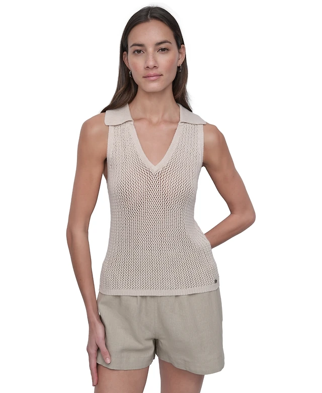 Dkny Jeans Women's Lacey Stitch Collared Sleeveless Sweater