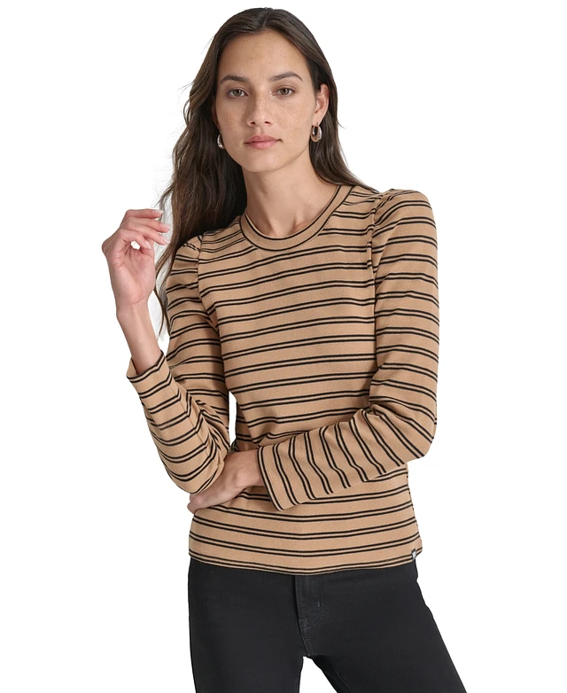 Dkny Jeans Women's Striped Long-Sleeve Crewneck Top