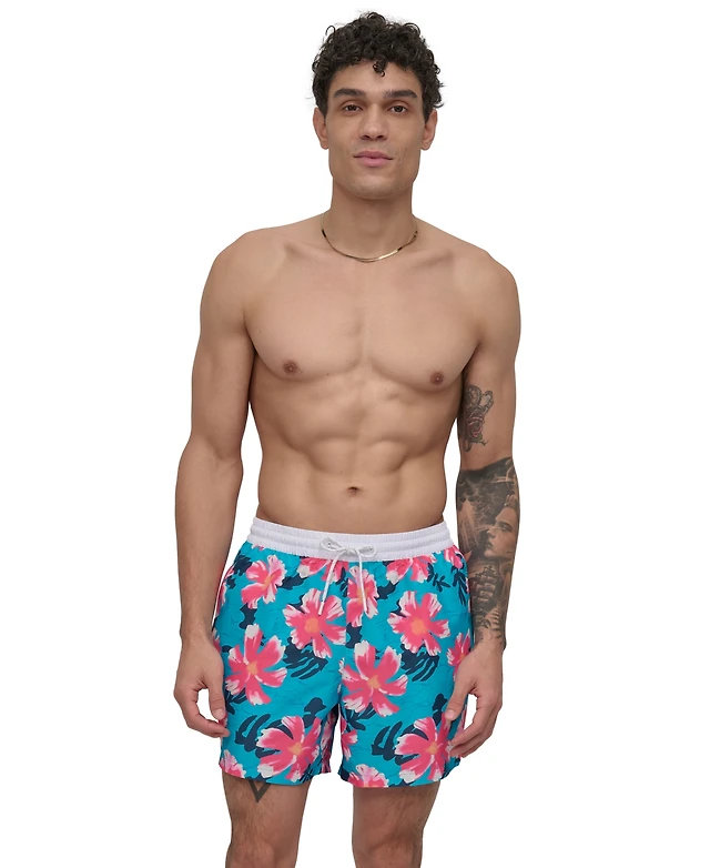 Dkny Men's Modern Euro Floral Print Performance 5" Volley Shorts