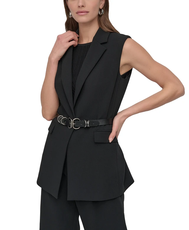 Dkny Petites Sleeveless Belted Notch-Collar Vest Jacket