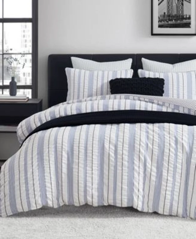 Closeout! Calvin Klein Seersucker 3 Piece Duvet Cover Set