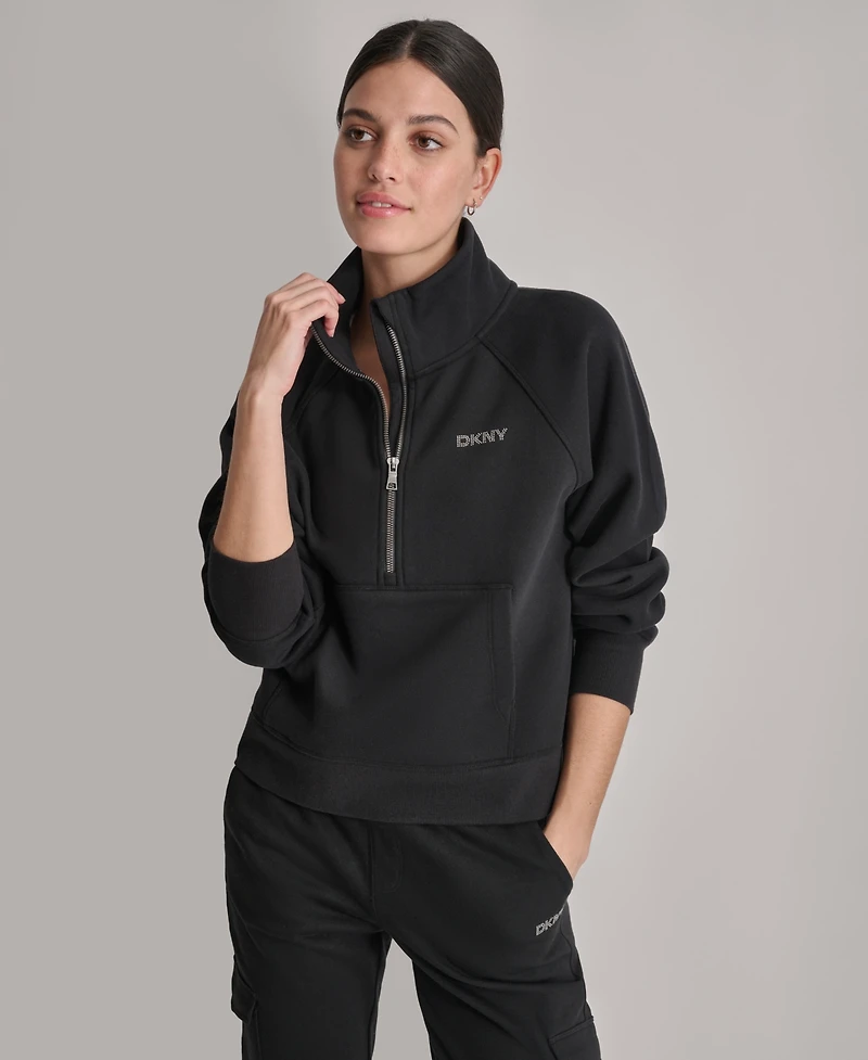 Dkny Sport Women's Studded-Logo Half-Zip Sweatshirt