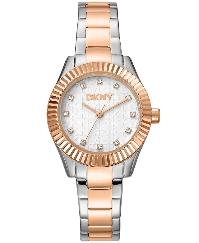 Dkny Women's Chambers Glitz Silver Dial Red Gold-Two-Tone Stainless Steel Bracelet Watch 30mm