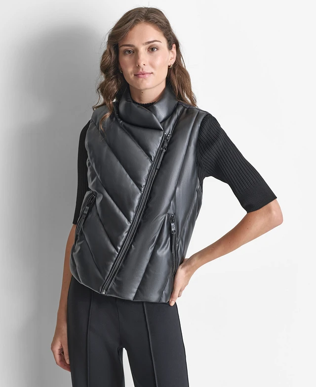 Dkny Women's Faux-Leather Zip-Front Puffer Vest