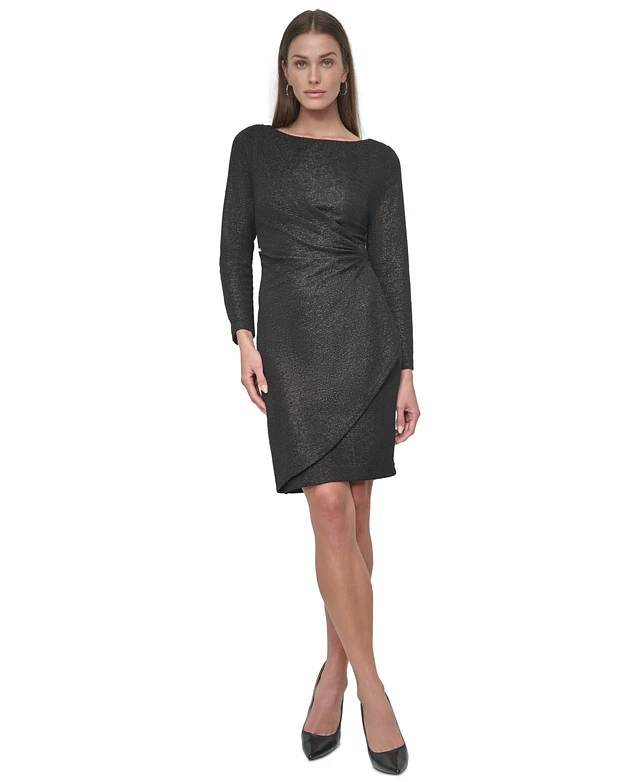 Dkny Women's Glitter-Knit Faux-Wrap Sheath Dress
