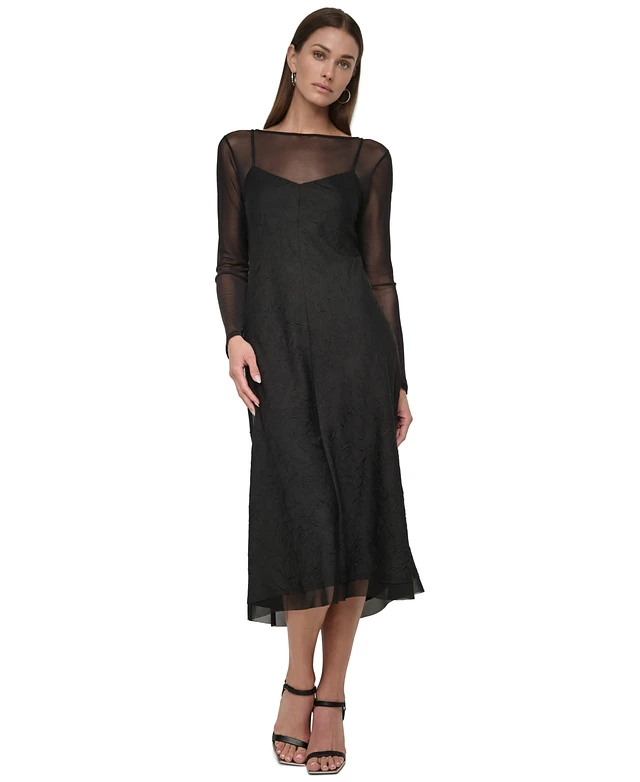 Dkny Women's Illusion Long-Sleeve Crushed Charmeuse Slip Dress