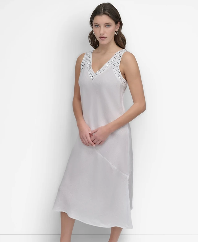 Dkny Women's Linen Sleeveless Studded V-Neck Dress