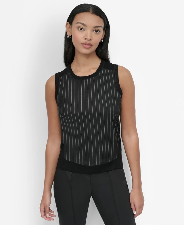 Dkny Women's Mixed-Media Pinstripe Sweater Vest