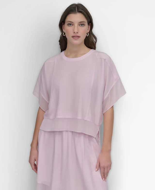 Dkny Women's Seamed Chiffon-Trim Dolman-Sleeve Top