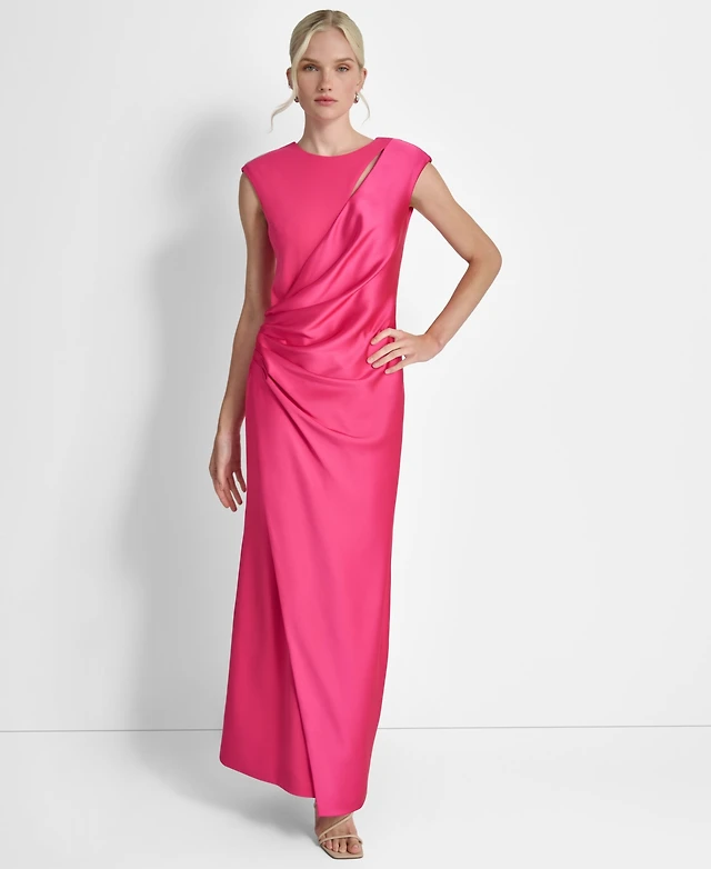 Dkny Women's Side-Ruched Cut-Out Cap-Sleeve Gown