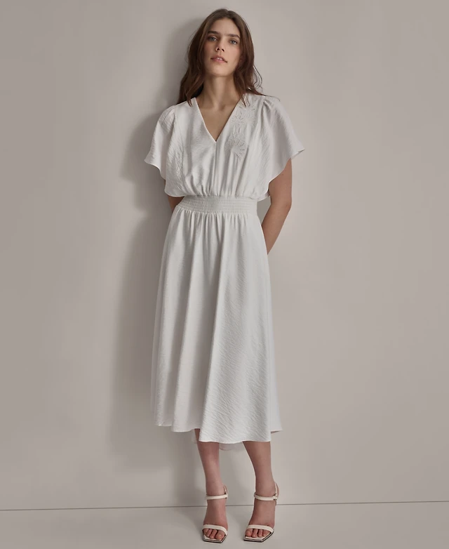 Dkny Women's V-Neck Smocked-Waist Short-Sleeve Dress