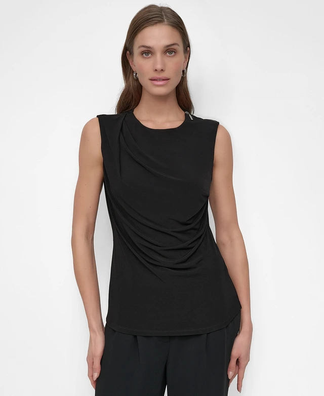 Dkny Women's Zip-Shoulder Sleeveless Knit Top