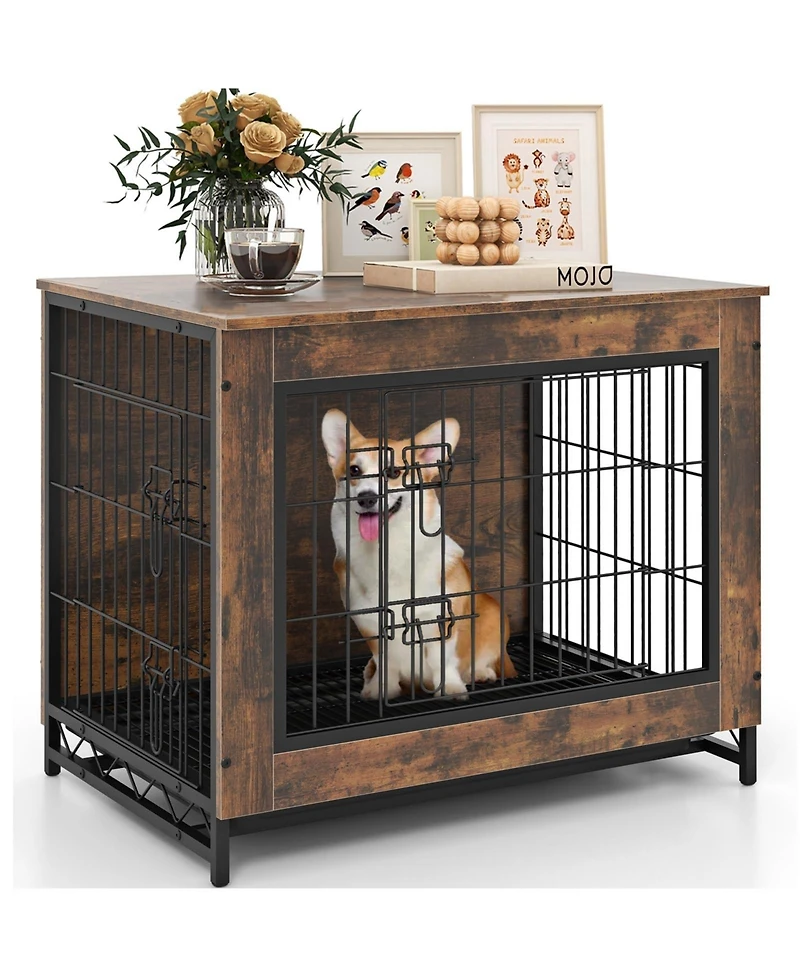 Dog Crate Furniture with Double Lockable Doors and Removable Pull-out Tray