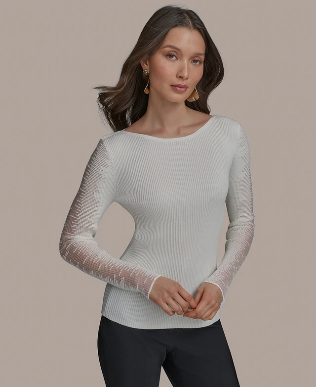 Donna Karan New York Women's Boat-Neck Sheer-Sleeve Sweater