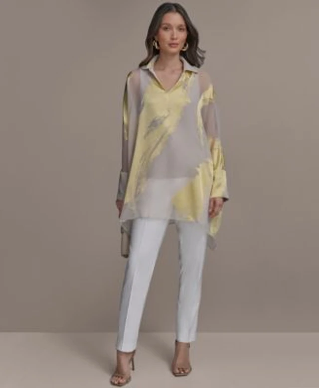 Donna Karan New York Womens Brushstroke Burnout Tunic Slim Leg Pants