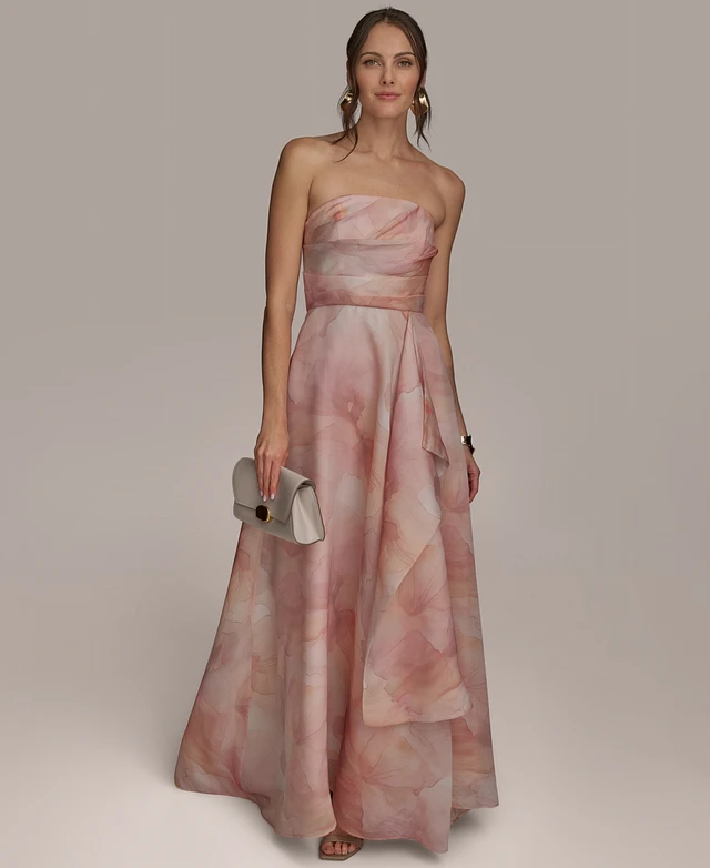 Donna Karan New York Women's Floral Print Strapless Ball Gown