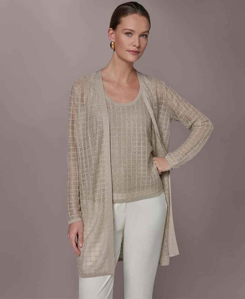 Donna Karan New York Women's Grid Pattern Long-Sleeve Cardigan
