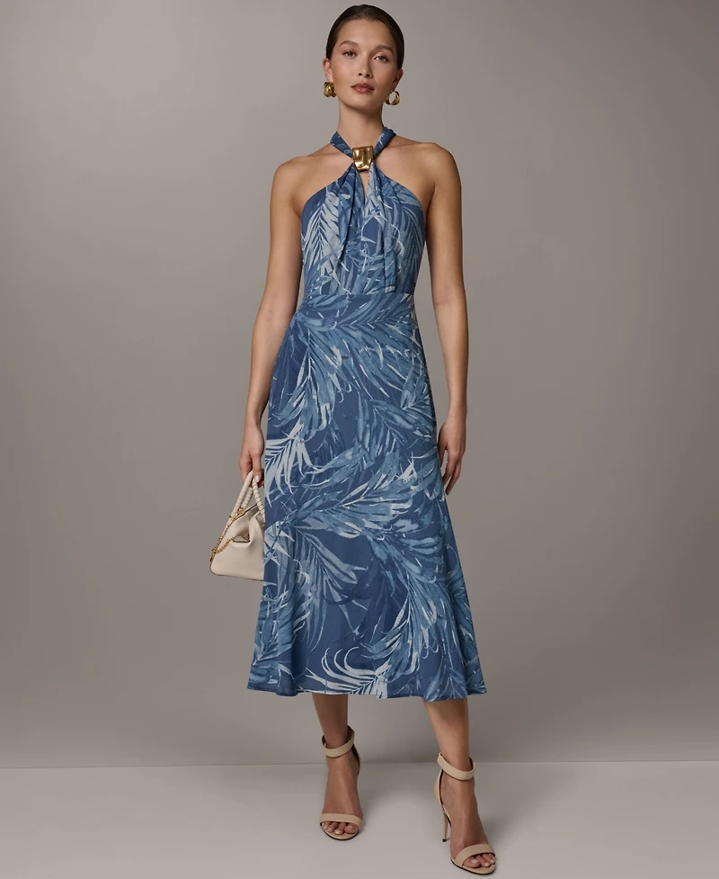Donna Karan New York Women's Halter Chiffon A-Line Sleeveless Midi Dress in Ponce, PR