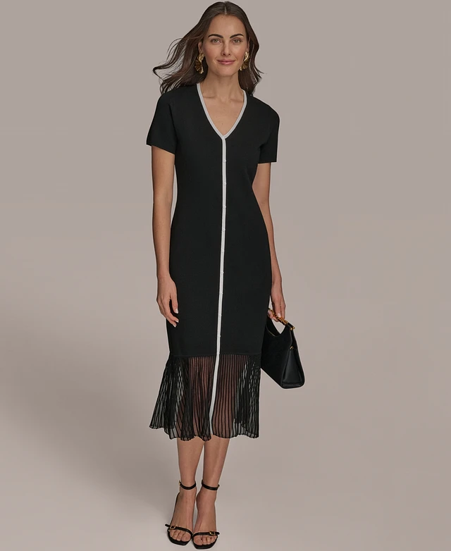Donna Karan New York Women's Mixed-Media Midi Dress