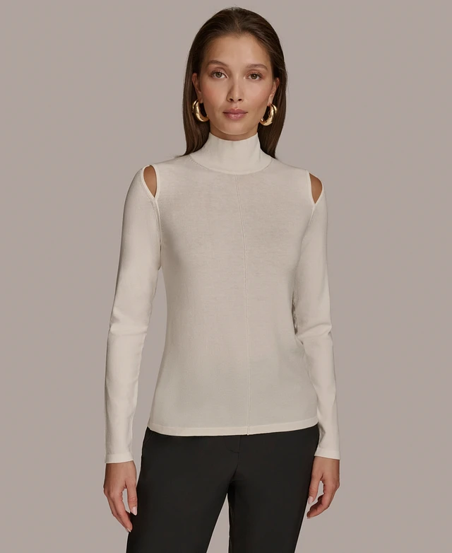Donna Karan New York Women's Mock-Neck Cold-Shoulder Sweater
