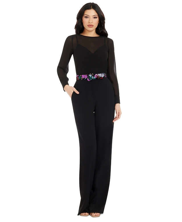 Dress the Population Women's Sequin Belted Pilar Jumpsuit