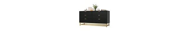 Dresser For Bedroom, Large 6 Drawer Dresser Organizer With Golden Metal Handle And Legs, Modern Chest Of Drawers, Large Dresser For Closet, Hallway, L