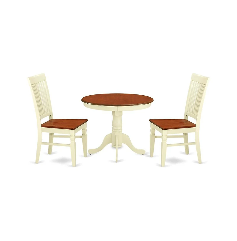 Dining Room Set Buttermilk and Cherry, ANWE3-bmk-w. Presenting an attractive Dinette set to increase the beauty of the dining area with stylish style. This modern dining table set includes 2 dining chairs and an attractive wood dining table that will improve the attractiveness of any dining room with