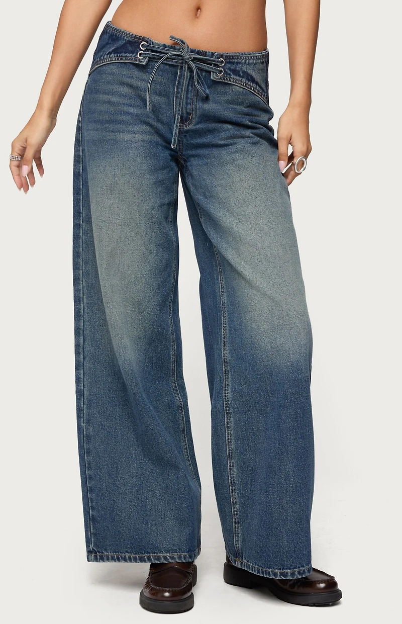Edikted Niah Lace Up Low Rise Baggy Jeans