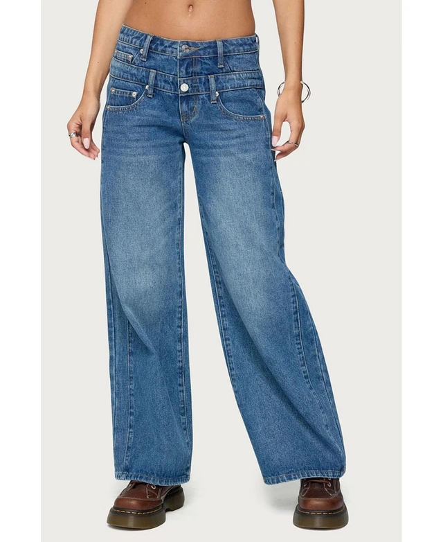 Edikted Women's Abel Layered Look Low Rise Jeans