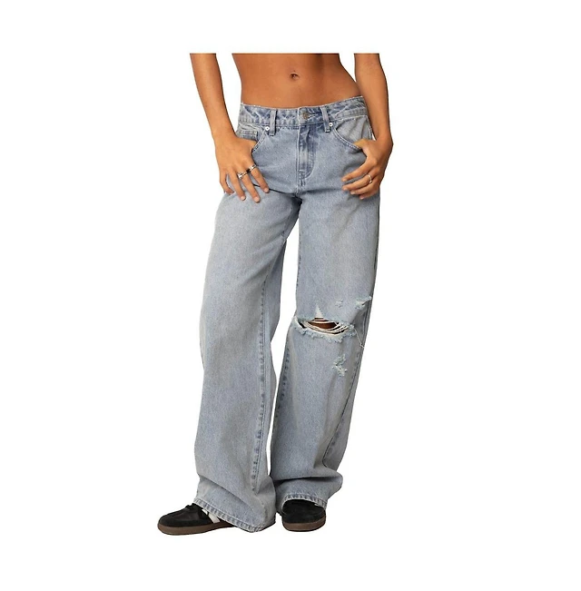 Edikted Women's Xenia Distressed Low Rise Jeans